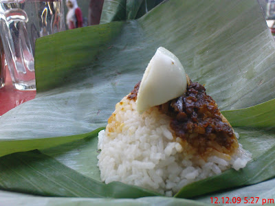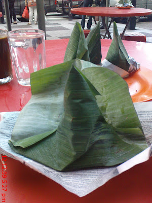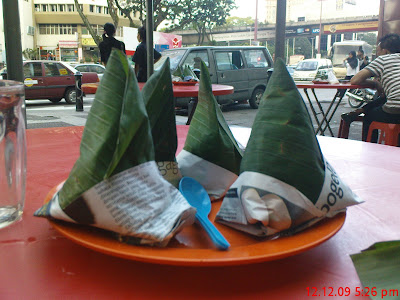 The other day, I had a late lunch near Pudu Raya, I found these tall nasi lemak, but only the leaf is high but the nasi lemak is low. I thought the nasi lemak would surely be conical too. Guess I was had. But still, I had two of them. hehehehe